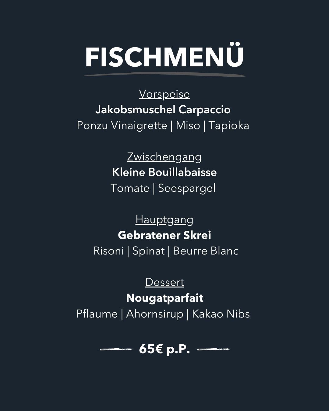 Das Menü servieren wir für 65 € pro Person.